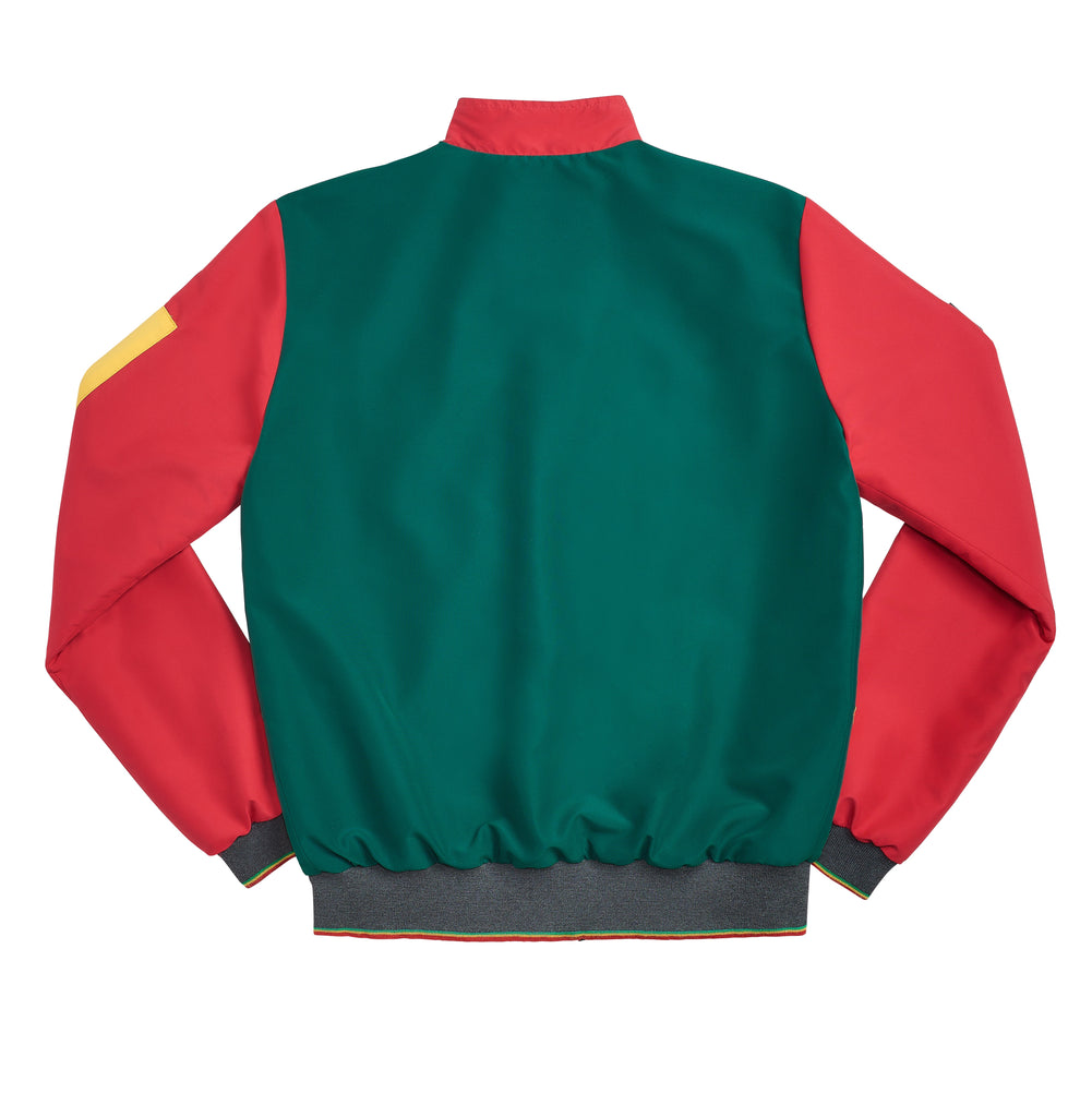 •Custom tri-color rib cuffs & hem