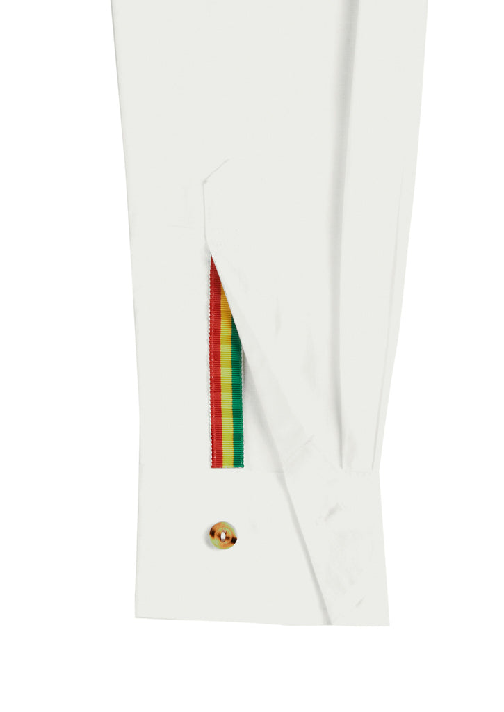 tri-color grosgrain on sleeve plackets. Looks good with Khakis or jeans.